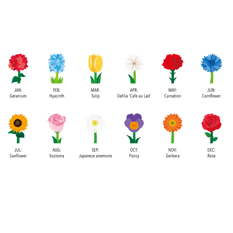 Flowers is a paper craft calendar from Japan that requires no assembly, the flower for each month can simply be rotated out of the 'vase'