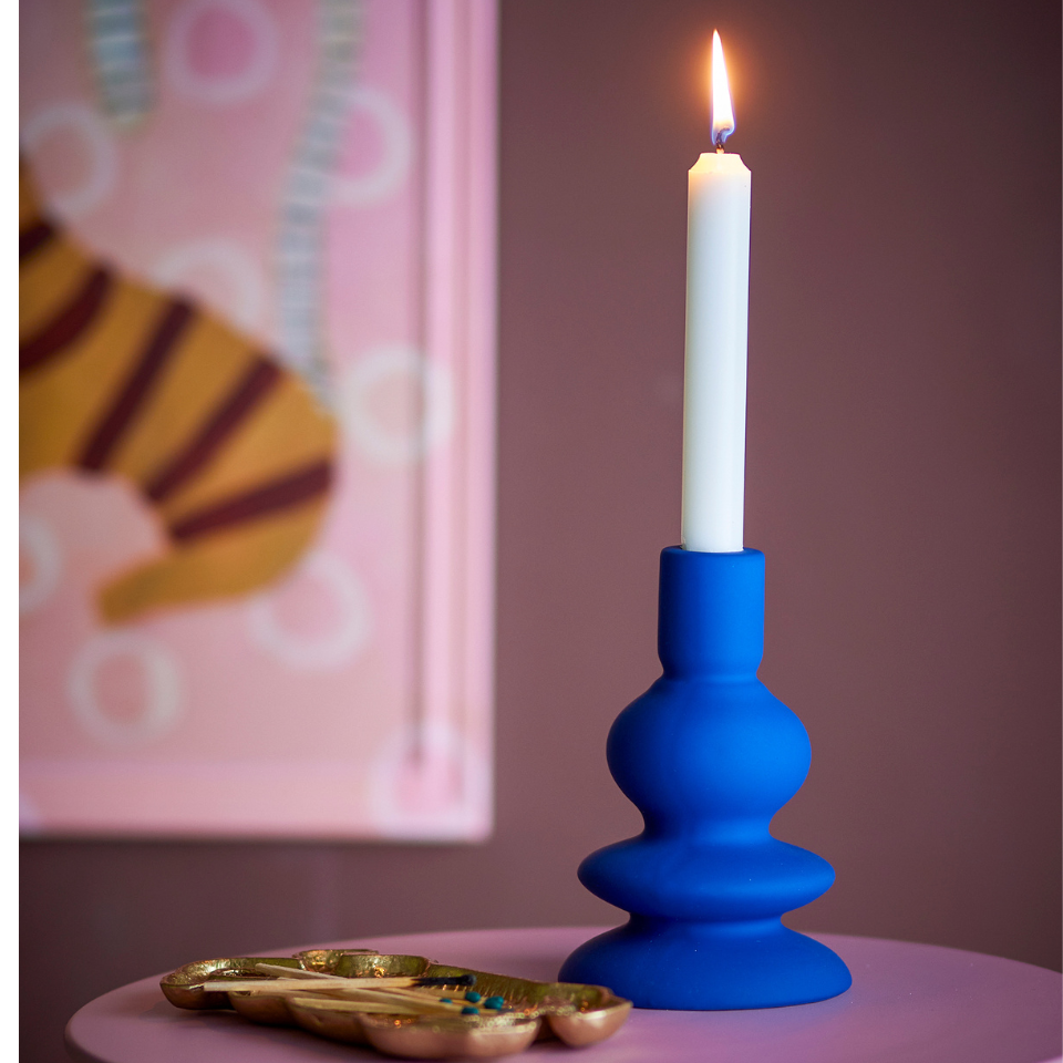 The Thorne Candle Holder by Bloomingville is made of stoneware with a matte, deep blue glaze. The wavy shape adds a graphic expression and creates a nice contrast in the interior. Beautiful on its own or in combination with other candleholders on a shelf, tray or windowsill.