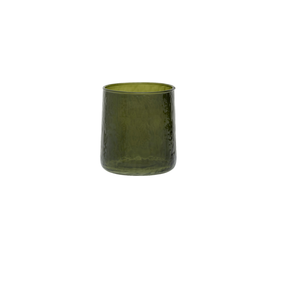 This dark green hammered tumbler has a gently tapering shape and rounded base. Its textured surface adds a playful touch, perfect for sunny evenings filled with laughter and good company.